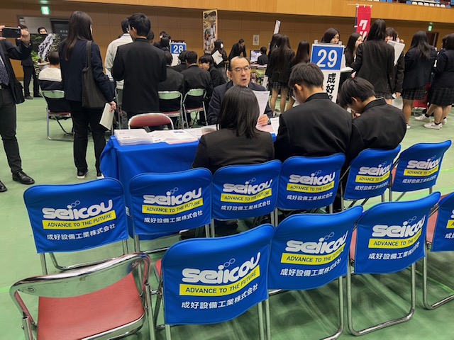 卒業学科を問わず、多くの県北の高校1・2年生が当社のブースにお越しいただき、お話を聞いていただきました。