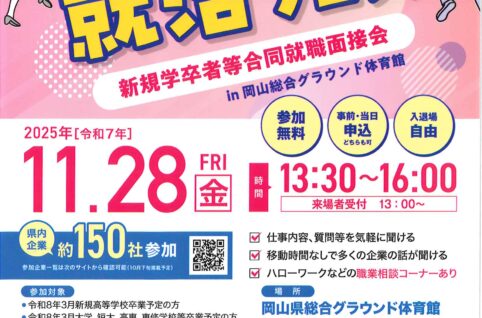 2025年11月28日(金)岡山総合グラウンド体育館で「おかやま就活フェス」が開催されます。 弊社も参加予定です。 建設業や設備工事に興味がある方もない方も、お気軽に弊社ブースへお越しください。